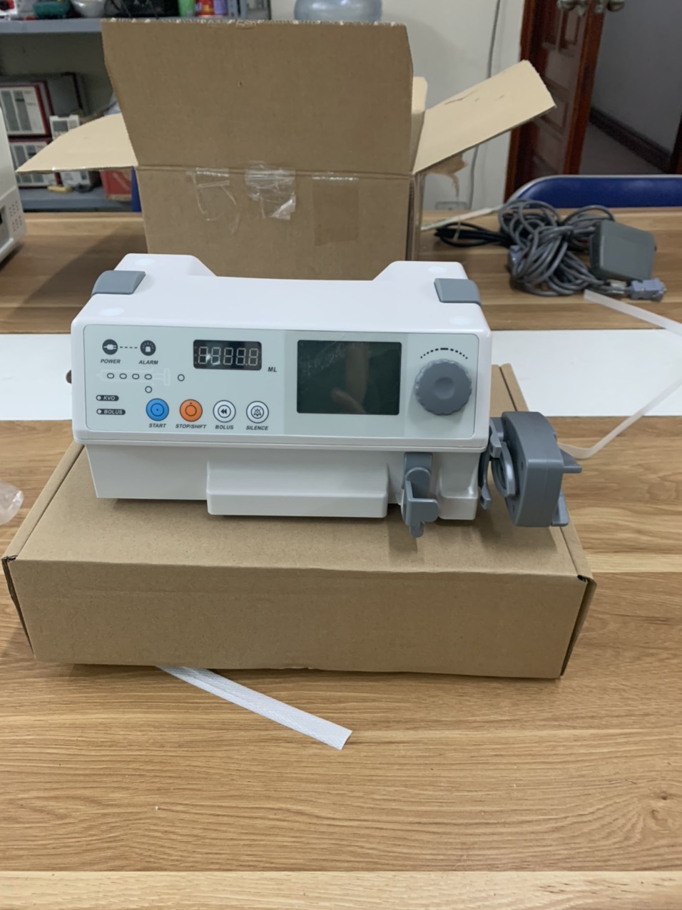 | Nguồn điện | AC 100–240V, 50/60Hz; Pin lithium 11.1V ≥1800mAh (5 giờ dự phòng ở 5ml/h); DC 12V ngoài |