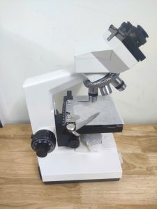 – Thị kính có cấu tạo nghiêng 45o. – Bàn sa trượt có cơ cấu giữ mẫu và dịch chuyển mẫu theo 2 chiều ngang – dọc, kích thước 140 x 140 mm, phạm vi dịch chuyển 75mm x 45mm